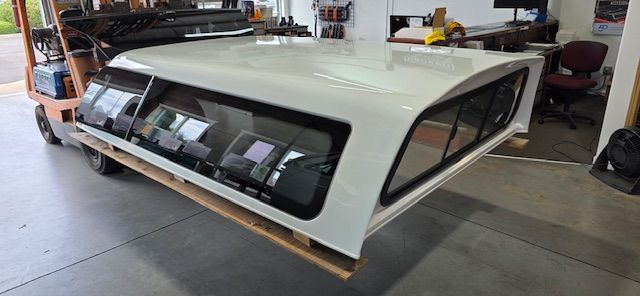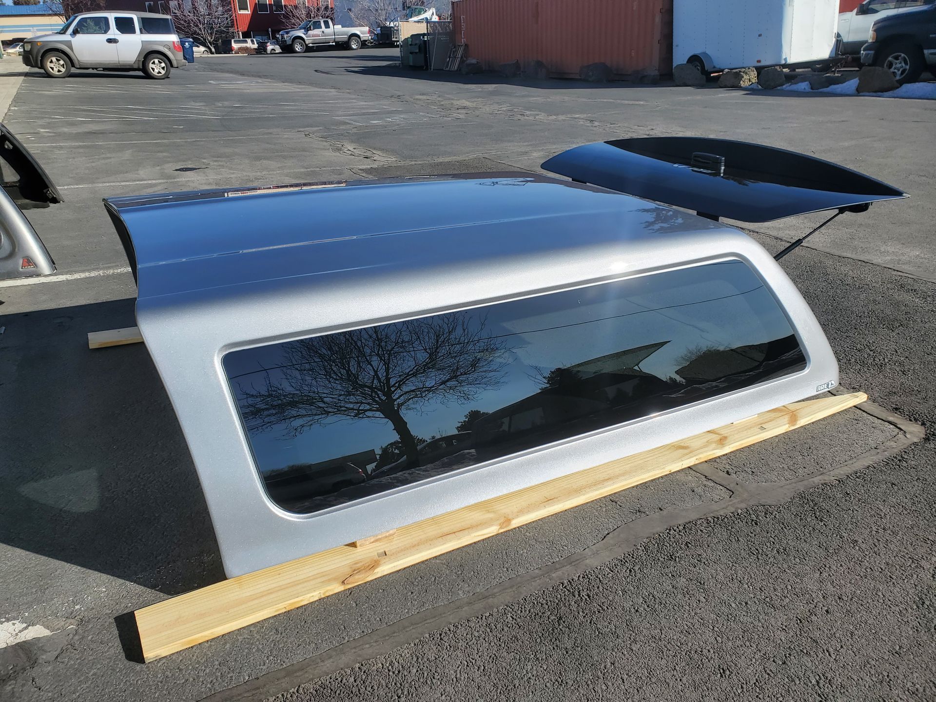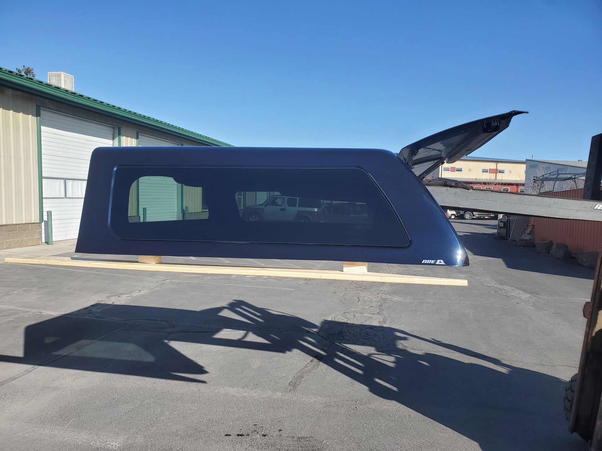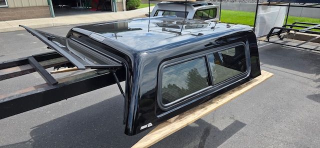 Fits Bed size 78.9" Integrated roof rails, positive pressure air vent front and side flush-bonded slider windows, gullwing side doors Rear half-door w/ flush-bonded fixed window matte black